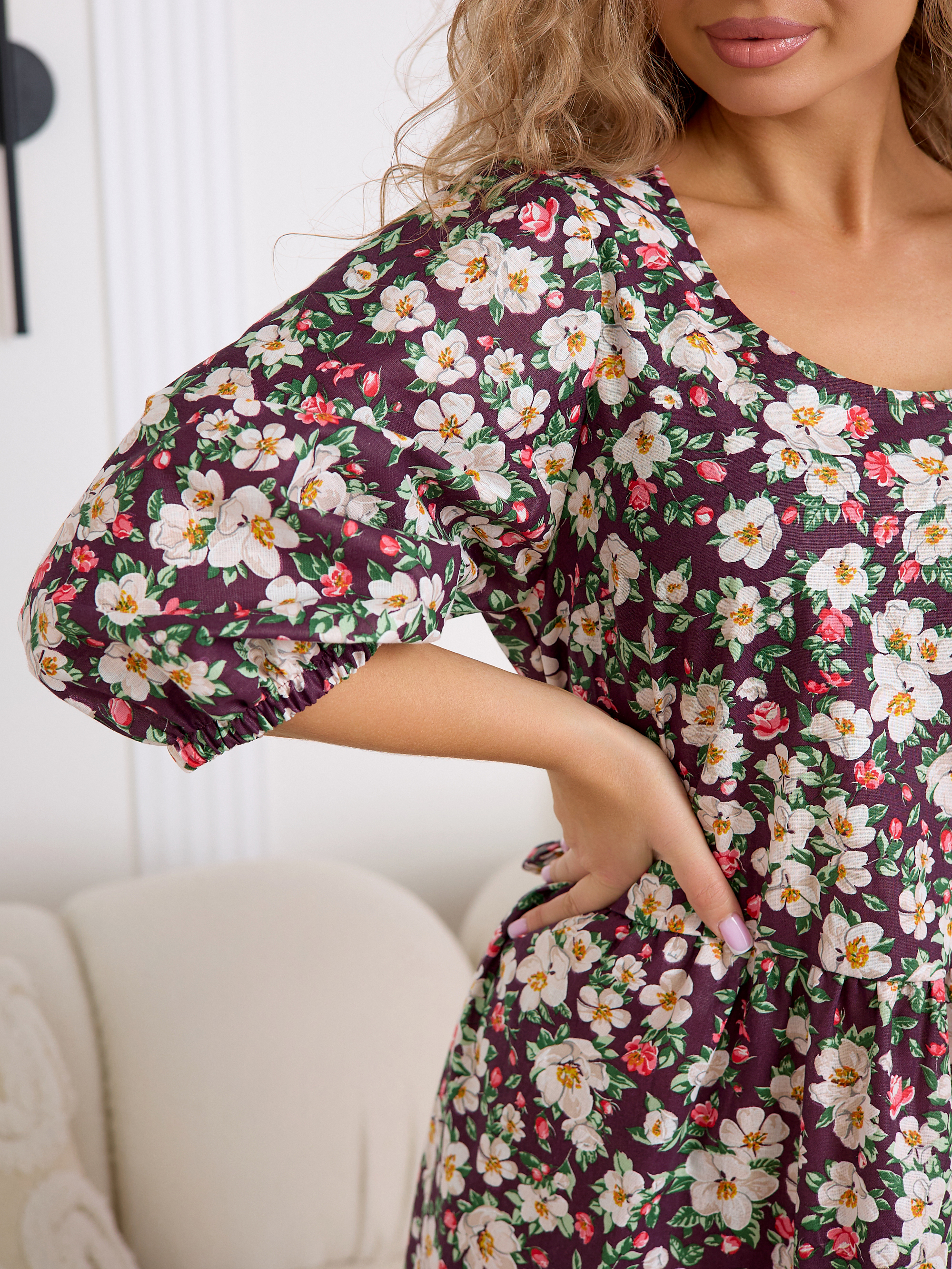 Ищете одежду, которая сочетает в себе деревенский шарм, комфорт и лёгкость? Представляем вам длинное платье в стиле бохо, воплощающее дух свободы и естественности. Модель выполнена из натуральной бязи (100% хлопок) — идеальной ткани для жаркого лета.